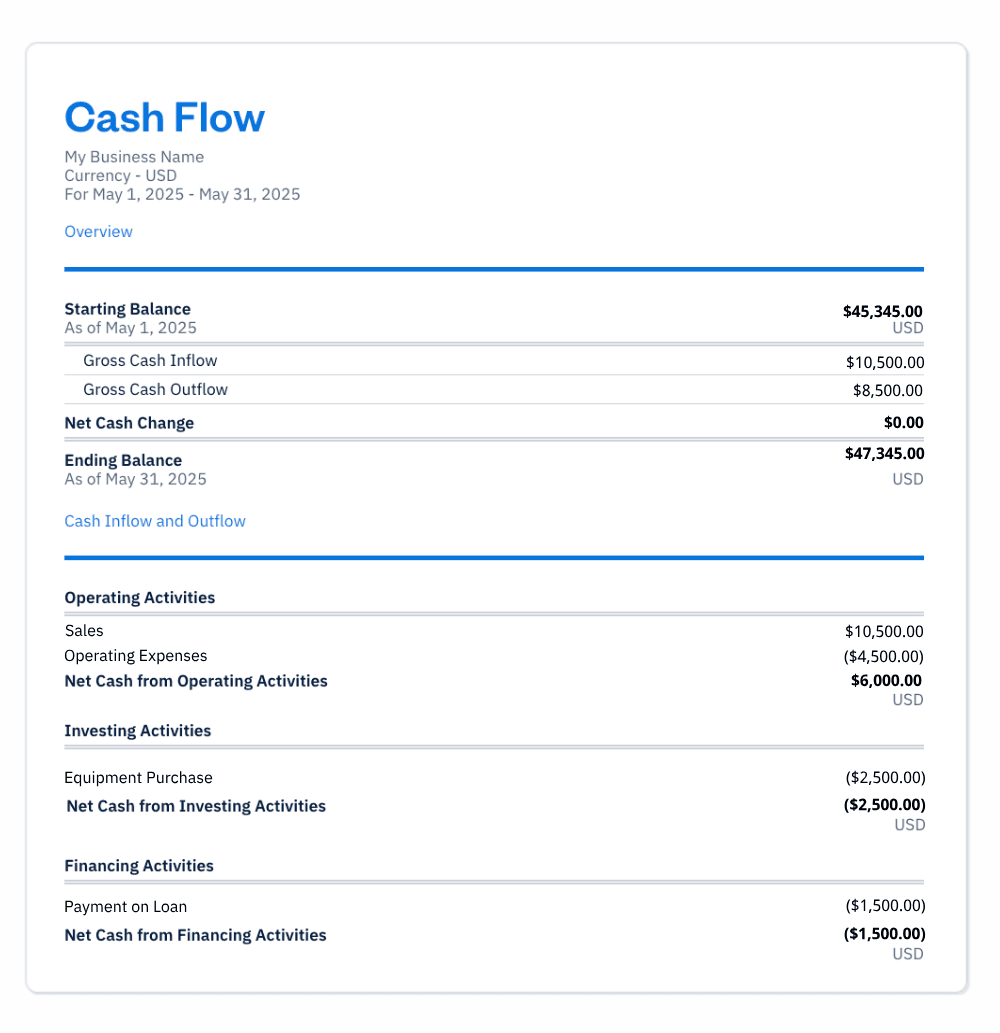 A cash flow statement gives an overview of how cash moves in and out of a business.