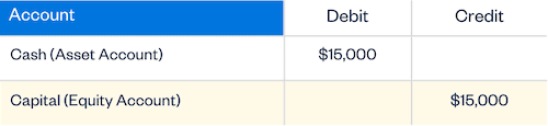 In your ledger, you debit the cash (asset) account and credit the capital (equity) account.