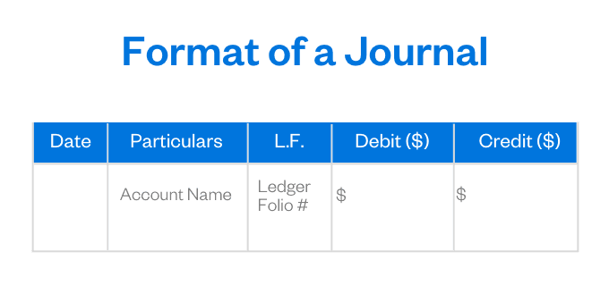 A journal format is simple. It includes the transaction date, particulars of the transaction, folio number, debit amount, and credit amount. There's no need to balance journal entries.
