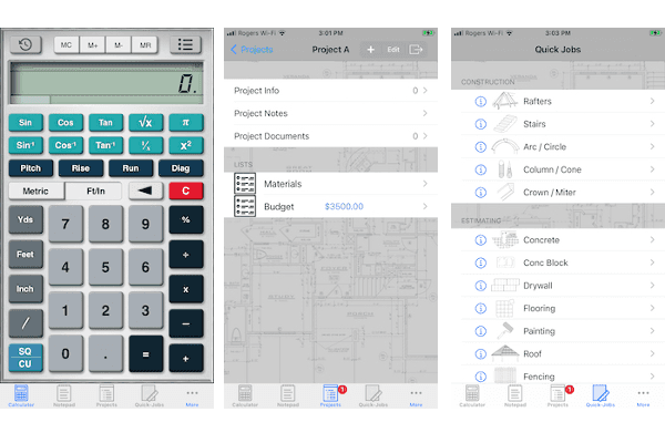 For iOS, try the Builder's Helper MAX app for all your unit calculation needs. Calculate stair lengths, roof pitch, rafter lengths, and more. The basic calculator is free, with upgrades for some features, like project management and Quick Jobs, which lets you quickly calculate construction projects like fencing, drywall, painting, and flooring too.