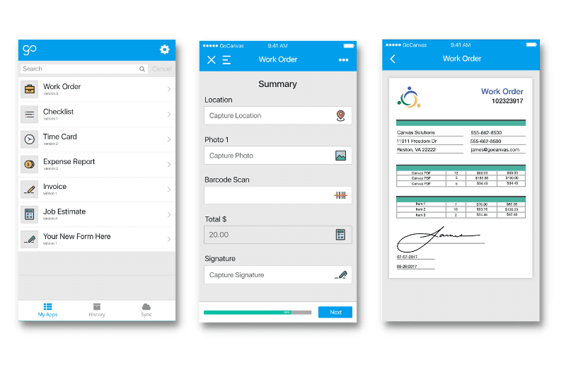 GoCanvas eliminates the need to carry around piles of paper between job sites. The app works online or offline.