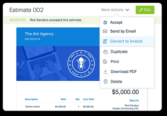 FreshBooks’ online estimating software makes generating and sending estimates easy, plus you can easily convert them into invoices.