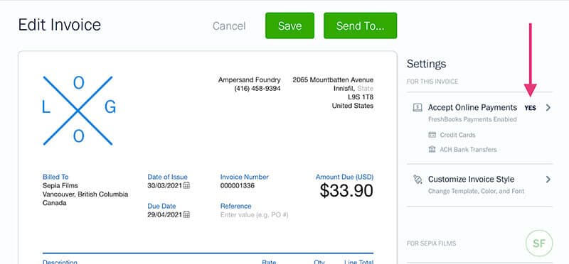 - Now, you’ll have the option to accept Bank Transfers on an invoice