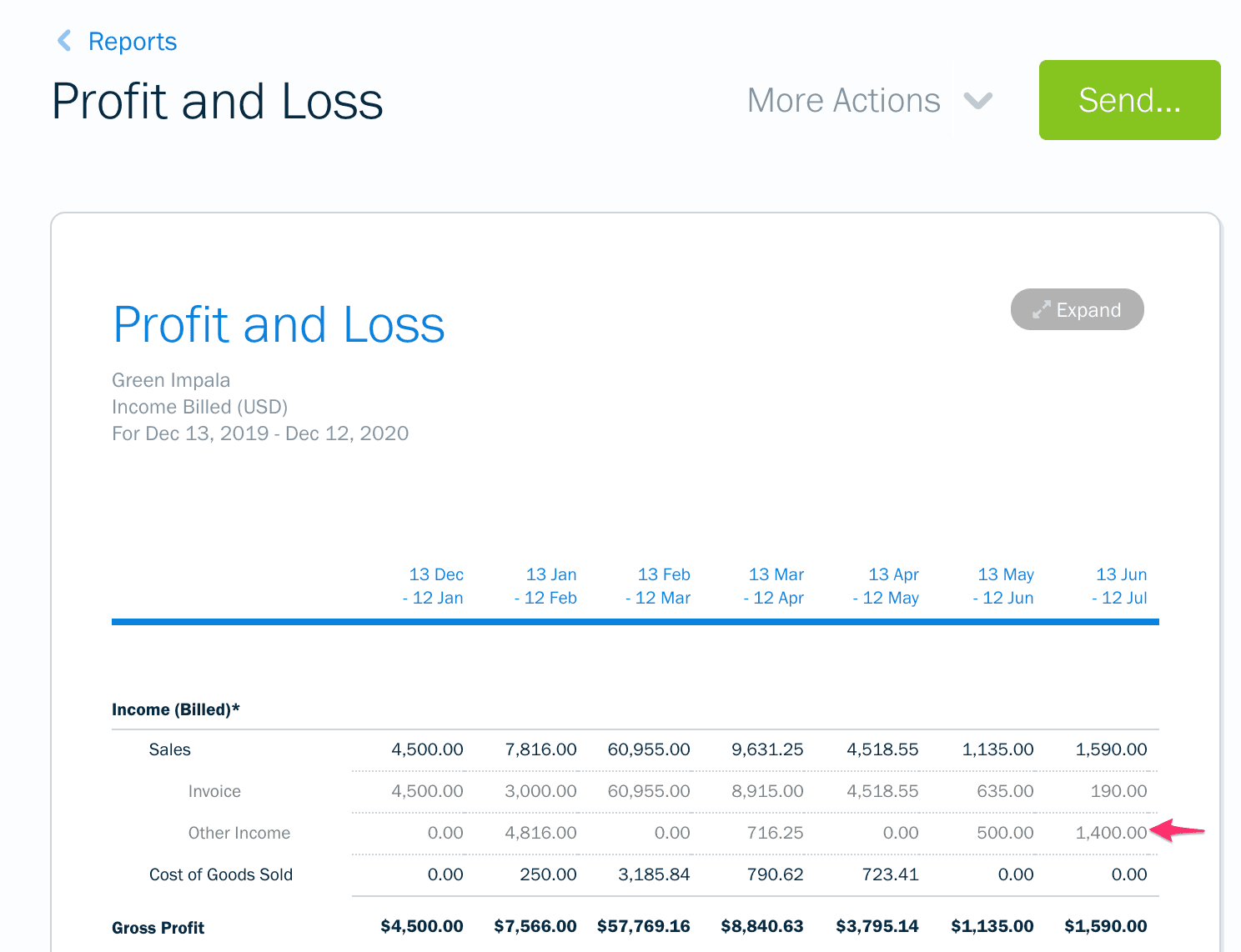 You’ll see all the financial information for Checkout Link transactions reflected under Sales > Other Income in the Profit & Loss Report. This number doesn’t include the tax, which is available separately in the Sales Tax Summary Report.