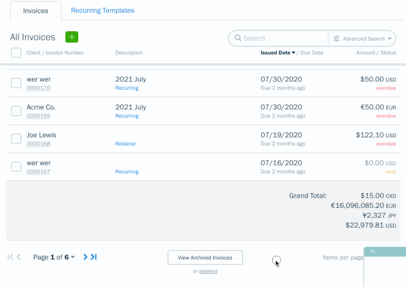 Accidentally deleted an Invoice or Client? Or just looking for a Proposal you worked on months ago? Now you can search for deleted entries using the new search bar. Here’s what it looks like: