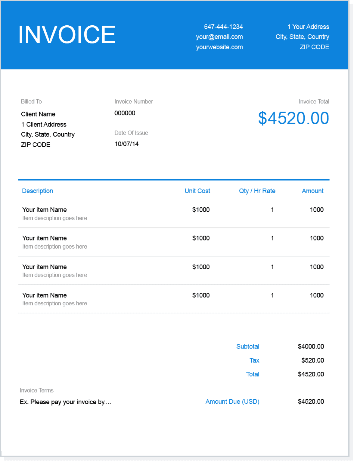 - If you have any other payment terms, like how to pay the invoice or associated late fees, you can insert these details into the template