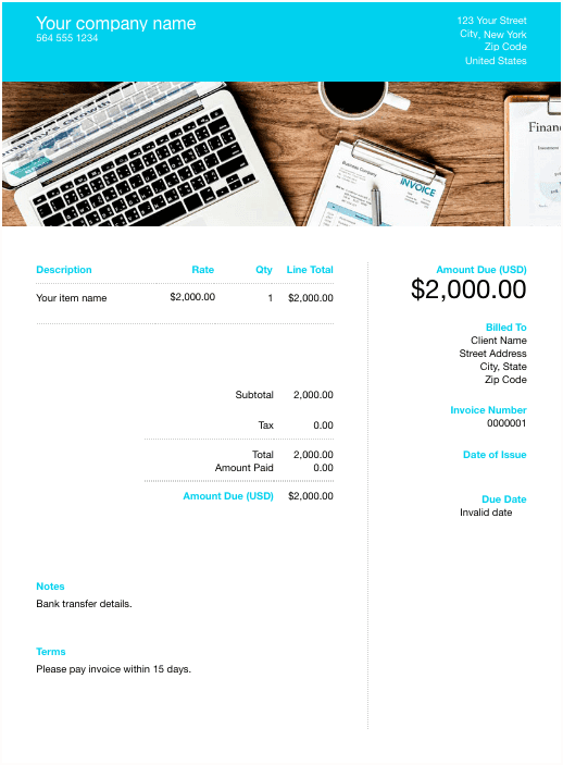 - Clearly outline the invoice number, issuing date, due date and payment terms.