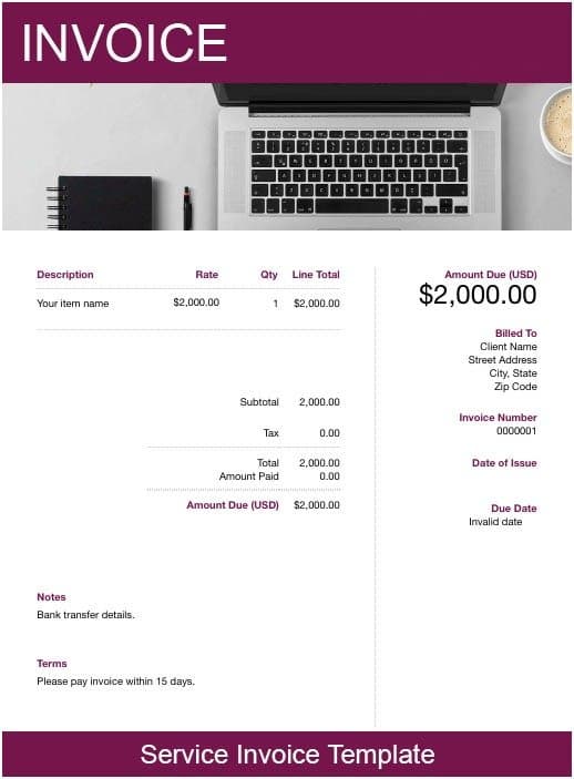 You must know how to fill out an invoice as all service-based businesses should develop and follow an invoice template that works for them. The template should feature the business’s branding, including its logo, common fonts, and color palettes. The service invoice template should be simple and professional and should showcase the most important information on the invoice: your business information, the amount owing, and the invoice due date. You can create your own simple invoice template design, or you can download a free service invoice template to use.