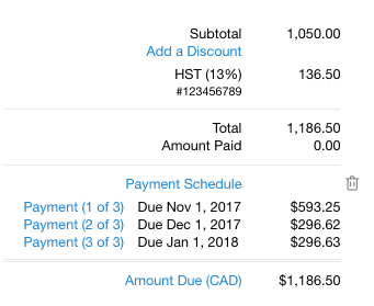 If you are using FreshBooks software, a partial payments option on invoices can be enabled at the click of a button, making it easier to keep track of amounts paid and amounts due, especially if you have several jobs completed at once.