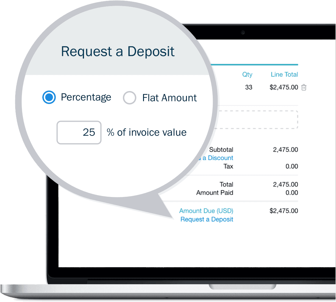 If a customer owes you $100 but cannot pay the entire amount now, you can allow them to make a smaller deposit of $50 now, and then have them pay the other half on the next invoice. You may also request a deposit to improve cash flow on large jobs.