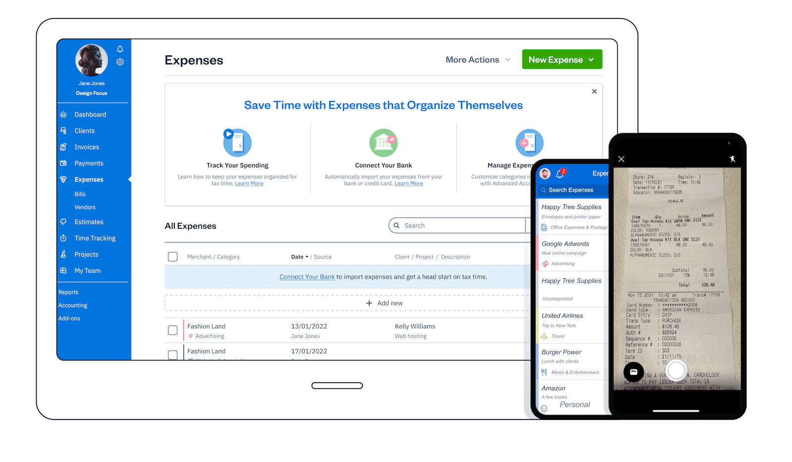 • Easy receipt capture: Capture receipts with your smartphone’s camera and upload them directly to FreshBooks.