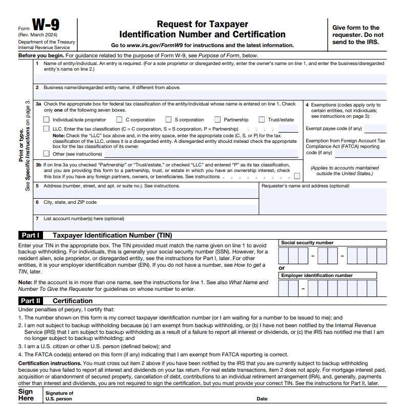 Now that you understand how form W-9 works and functions within the greater tax system, let’s take a look at how to fill out your form W-9 for federal tax purposes.