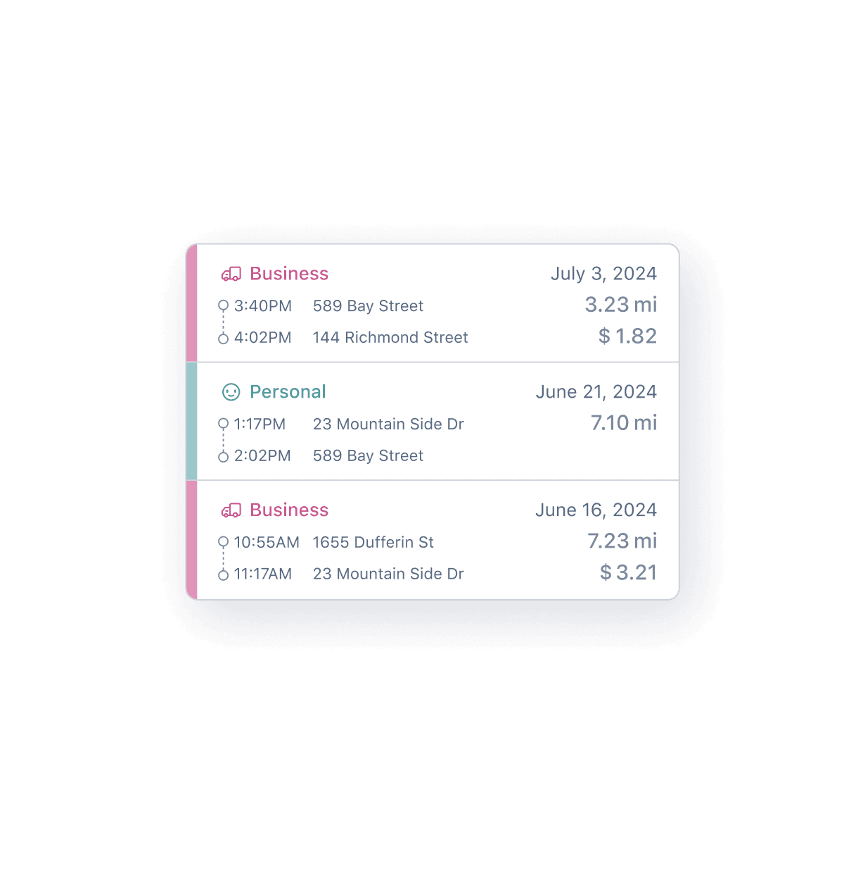 The last thing you need is paper trip logs. Easily swipe your screen to classify a trip as business or personal, then send a mileage report directly to your email or download it from FreshBooks.