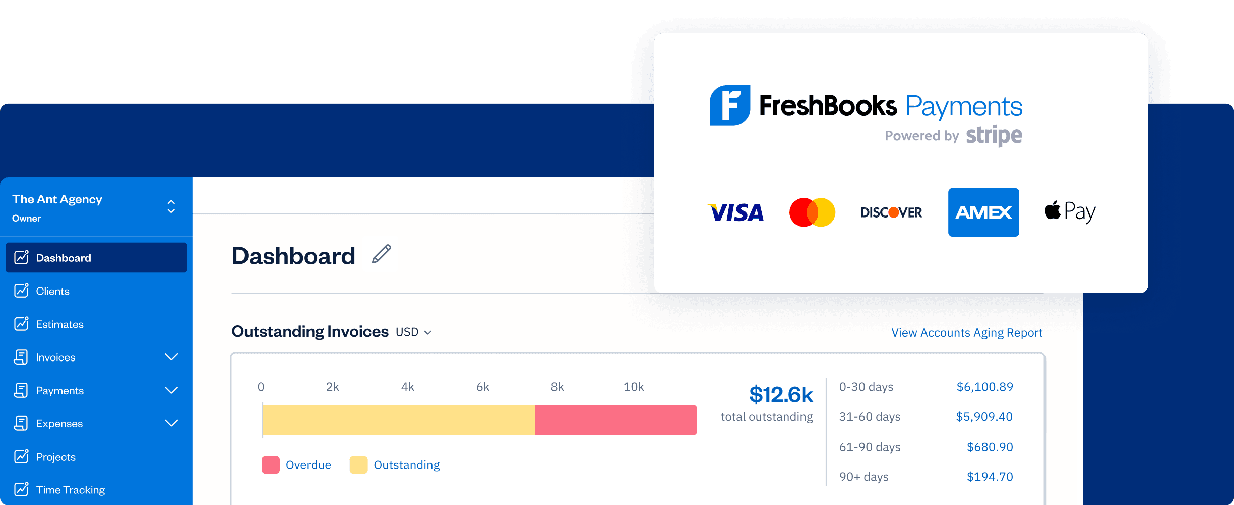 FreshBooks Payments lets you send invoices with a payment link, helping you get paid quickly and securely. It also enhances your ability to track and manage finances, improving your cash flow.