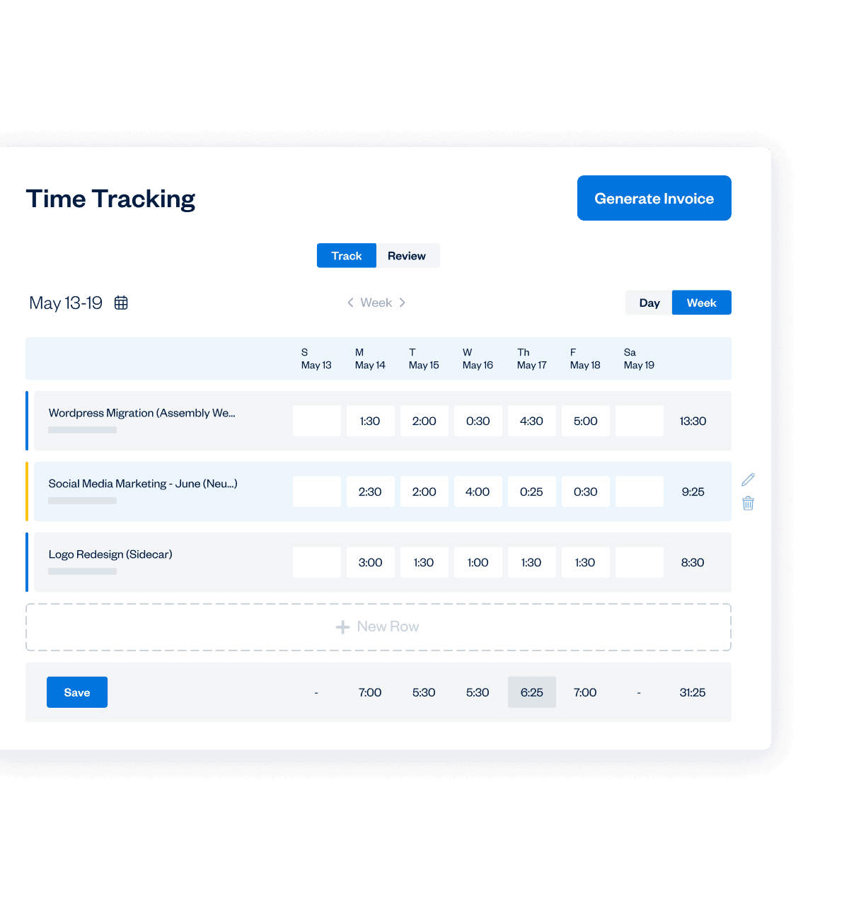 Say goodbye to remembering how long you and your team spent working on a client project. Just start a timer and get down to business – when you’re done, you’ll have an accurate time log ready to pop onto an invoice.
